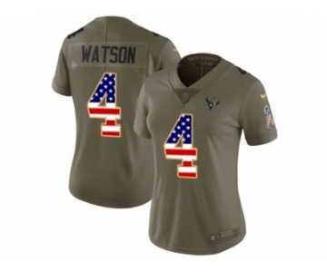 Women Nike Houston Texans #4 Deshaun Watson Limited Olive USA Flag 2017 Salute to Service NFL Jersey