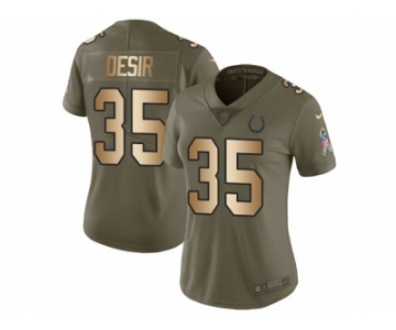Women Nike Indianapolis Colts #35 Pierre Desir Limited Olive Gold 2017 Salute to Service NFL Jersey