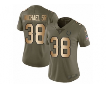 Women Nike Indianapolis Colts #38 Christine Michael Sr Limited Olive Gold 2017 Salute to Service NFL Jersey