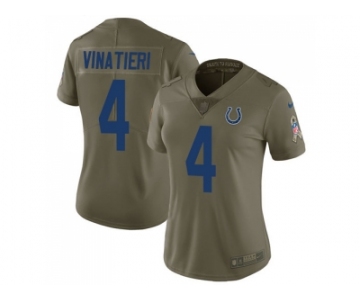 Women Nike Indianapolis Colts #4 Adam Vinatieri Olive Stitched NFL Limited 2017 Salute to Service Jersey