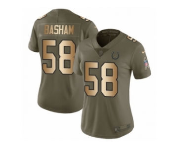Women Nike Indianapolis Colts #58 Tarell Basham Limited Olive Gold 2017 Salute to Service NFL Jersey