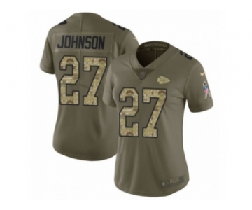 Women Nike Kansas City Chiefs #27 Larry Johnson Limited Olive Camo 2017 Salute to Service NFL Jersey