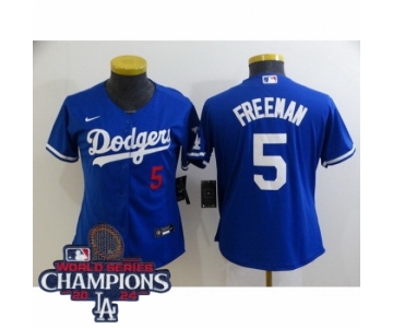 Women Nike Los Angeles Dodgers Freddie Freeman #5 Blue Flex Base 2024 World Series Champions Stitched MLB Jersey