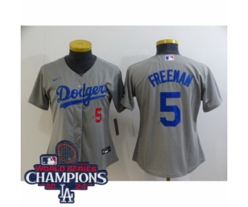 Women Nike Los Angeles Dodgers Freddie Freeman #5 Gray Flex Base 2024 World Series Champions Stitched MLB Jersey