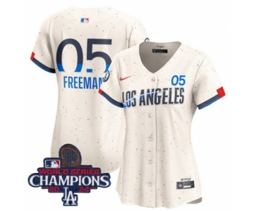 Women Nike Los Angeles Dodgers Freddie Freeman #5 Ice Cream 2024 World Series Champions Stitched MLB Jersey