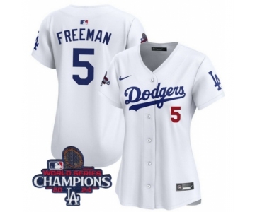 Women Nike Los Angeles Dodgers Freddie Freeman #5 White Flex Base 2024 World Series Champions Stitched MLB Jersey