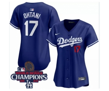 Women Nike Los Angeles Dodgers Shohei Ohtani #17 Blue Flex Base 2024 World Series Champions Stitched MLB Jersey