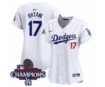 Women Nike Los Angeles Dodgers Shohei Ohtani #17 White Flex Base 2024 World Series Champions Stitched MLB Jersey