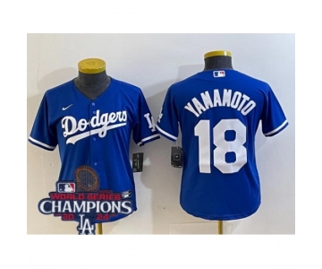 Women Nike Los Angeles Dodgers Yoshinobu Yamamoto #18 Blue Cool Base 2024 World Series Champions Stitched MLB Jersey
