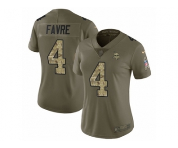 Women Nike Minnesota Vikings #4 Brett Favre Limited Olive Camo 2017 Salute to Service NFL Jersey