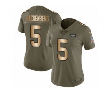 Women Nike New York Jets #5 Christian Hackenberg Limited Olive Gold 2017 Salute to Service NFL Jersey