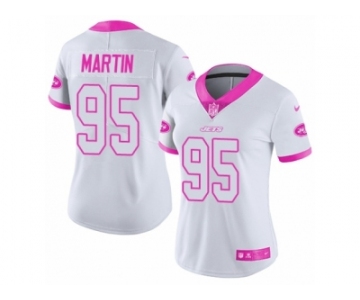 Women Nike New York Jets #95 Josh Martin Limited White Pink Rush Fashion NFL Jersey