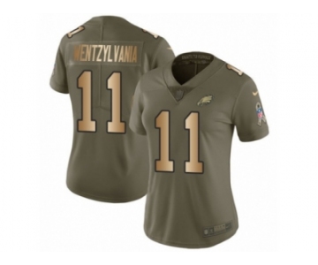 Women Nike Philadelphia Eagles #11 Carson Wentz Limited Olive Gold 2017 Salute to Service Wentzylvania NFL Jersey