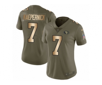 Women Nike San Francisco 49ers #7 Colin Kaepernick Limited Olive Gold 2017 Salute to Service NFL Jersey