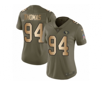 Women Nike San Francisco 49ers #94 Solomon Thomas Limited Olive Gold 2017 Salute to Service NFL Jersey