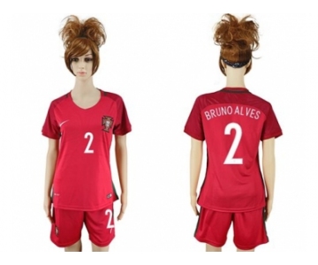 Women Portugal #2 Bruno Alves Home Soccer Country Jersey