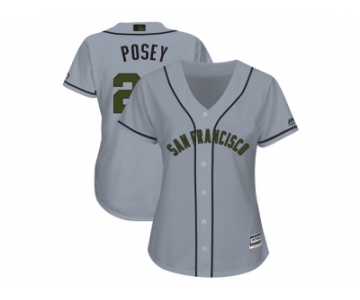 Women San Francisco Giants #28 Buster Posey Grey 2018 Memorial Day Cool Base Stitched MLB Jersey