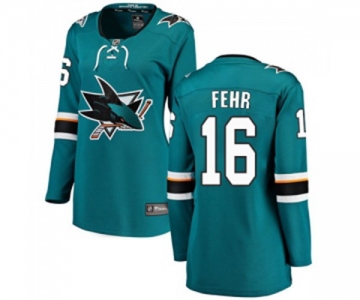 Women San Jose Sharks #16 Eric Fehr Fanatics Branded Teal Green Home Breakaway NHL Jersey