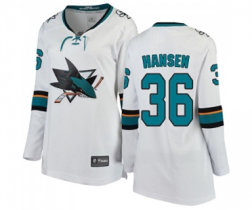 Women San Jose Sharks #36 Jannik Hansen Fanatics Branded White Away Breakaway NHL Jersey
