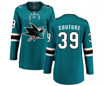 Women San Jose Sharks #39 Logan Couture Fanatics Branded Teal Green Home Breakaway NHL Jersey