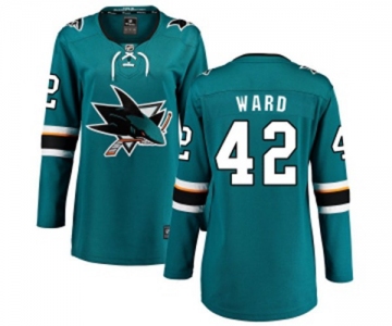 Women San Jose Sharks #42 Joel Ward Fanatics Branded Teal Green Home Breakaway NHL Jersey