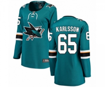 Women San Jose Sharks #65 Erik Karlsson Fanatics Branded Teal Green Home Breakaway NHL Jersey