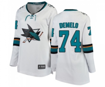 Women San Jose Sharks #74 Dylan DeMelo Fanatics Branded White Away Breakaway NHL Jersey