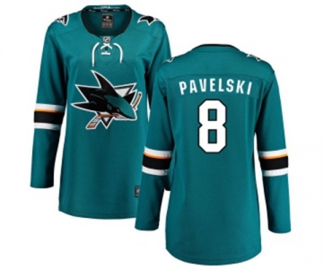 Women San Jose Sharks #8 Joe Pavelski Fanatics Branded Teal Green Home Breakaway NHL Jersey