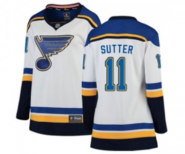 Women St. Louis Blues #11 Brian Sutter Fanatics Branded White Away Breakaway NHL Jersey