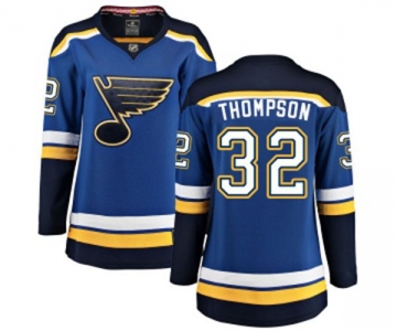 Women St. Louis Blues #32 Tage Thompson Fanatics Branded Royal Blue Home Breakaway NHL Jersey