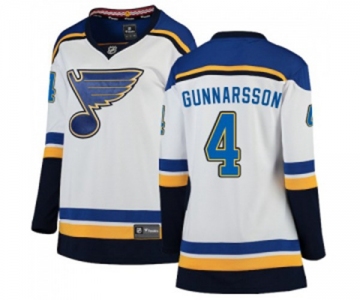 Women St. Louis Blues #4 Carl Gunnarsson Fanatics Branded White Away Breakaway NHL Jersey