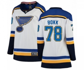 Women St. Louis Blues #78 Dominik Bokk Fanatics Branded White Away Breakaway NHL Jersey