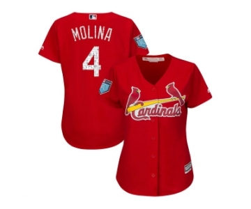 Women St. Louis Cardinals #4 Yadier Molina Majestic Scarlet 2018 Spring Training Cool Base Player Jersey