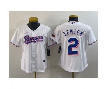 Women Texas Rangers 2 Marcus Semien White With Patch Stitched Baseball Jersey