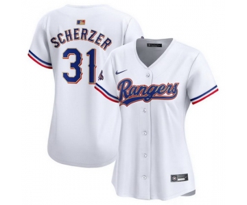 Women Texas Rangers 31 Max Scherzer White 2024 Gold Collection Stitched Baseball Jersey