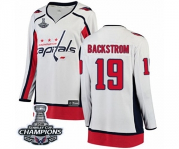 Women Washington Capitals #19 Nicklas Backstrom Fanatics Branded White Away Breakaway 2018 Stanley Cup Final Champions NHL Jersey