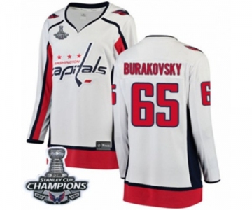 Women Washington Capitals #65 Andre Burakovsky Fanatics Branded White Away Breakaway 2018 Stanley Cup Final Champions NHL Jersey