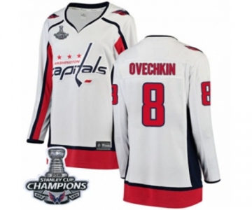 Women Washington Capitals #8 Alex Ovechkin Fanatics Branded White Away Breakaway 2018 Stanley Cup Final Champions NHL Jersey
