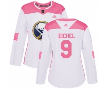 Women's Adidas Buffalo Sabres #9 Jack Eichel Authentic White-Pink Fashion NHL Jersey