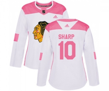 Women's Adidas Chicago Blackhawks #10 Patrick Sharp Authentic White Pink Fashion NHL Jersey