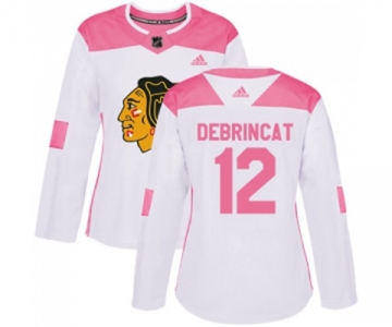 Women's Adidas Chicago Blackhawks #12 Alex DeBrincat Authentic White Pink Fashion NHL Jersey