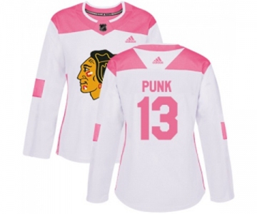 Women's Adidas Chicago Blackhawks #13 CM Punk Authentic White Pink Fashion NHL Jersey