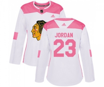 Women's Adidas Chicago Blackhawks #23 Michael Jordan Authentic White Pink Fashion NHL Jersey