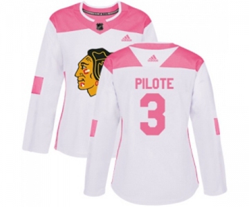 Women's Adidas Chicago Blackhawks #3 Pierre Pilote Authentic White Pink Fashion NHL Jersey