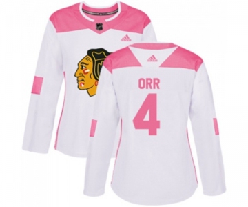 Women's Adidas Chicago Blackhawks #4 Bobby Orr Authentic White Pink Fashion NHL Jersey
