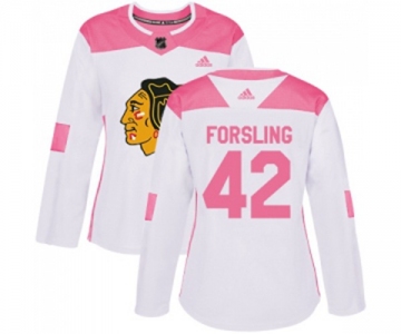 Women's Adidas Chicago Blackhawks #42 Gustav Forsling Authentic White Pink Fashion NHL Jersey
