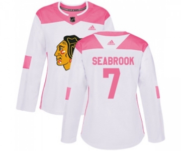 Women's Adidas Chicago Blackhawks #7 Brent Seabrook Authentic White Pink Fashion NHL Jersey