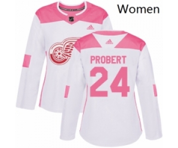 Womens Adidas Detroit Red Wings 24 Bob Probert Authentic WhitePink Fashion NHL Jersey