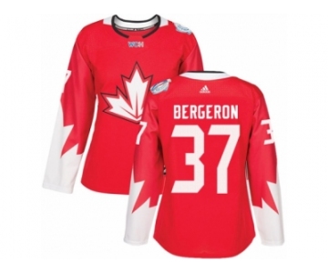 Women's Adidas Team Canada #37 Patrice Bergeron Authentic Red Away 2016 World Cup Hockey Jersey