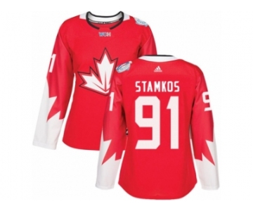 Women's Adidas Team Canada #91 Steven Stamkos Authentic Red Away 2016 World Cup Hockey Jersey